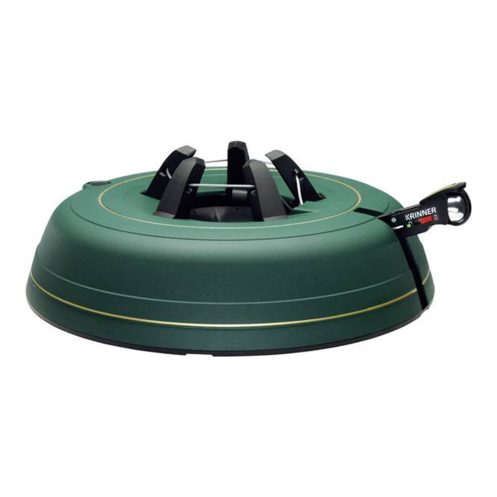 Kerstboomstandaard voor de grootste kerstbomen. Klik/trap systeem met een staalkabel rondom de stam van de kerstboom.